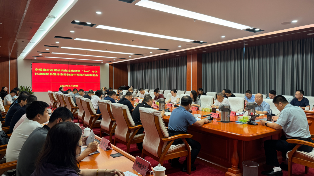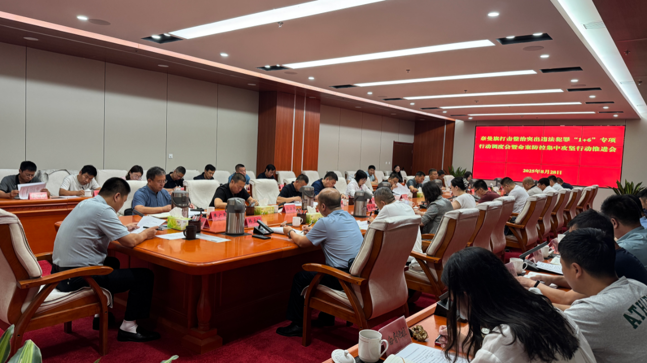 8月28日,奈曼旗组织召开打击整治突出违法犯罪“1+6”专项行动调度会暨命案防控集中攻坚行动推进会。旗人民政府副旗长、公安局党委书记、局长杨春生同志出席会议并讲话。旗委政法委副书记、各苏木镇场街道党委副书记(政法委员)及旗直相关部门分管负责同志参加会议。