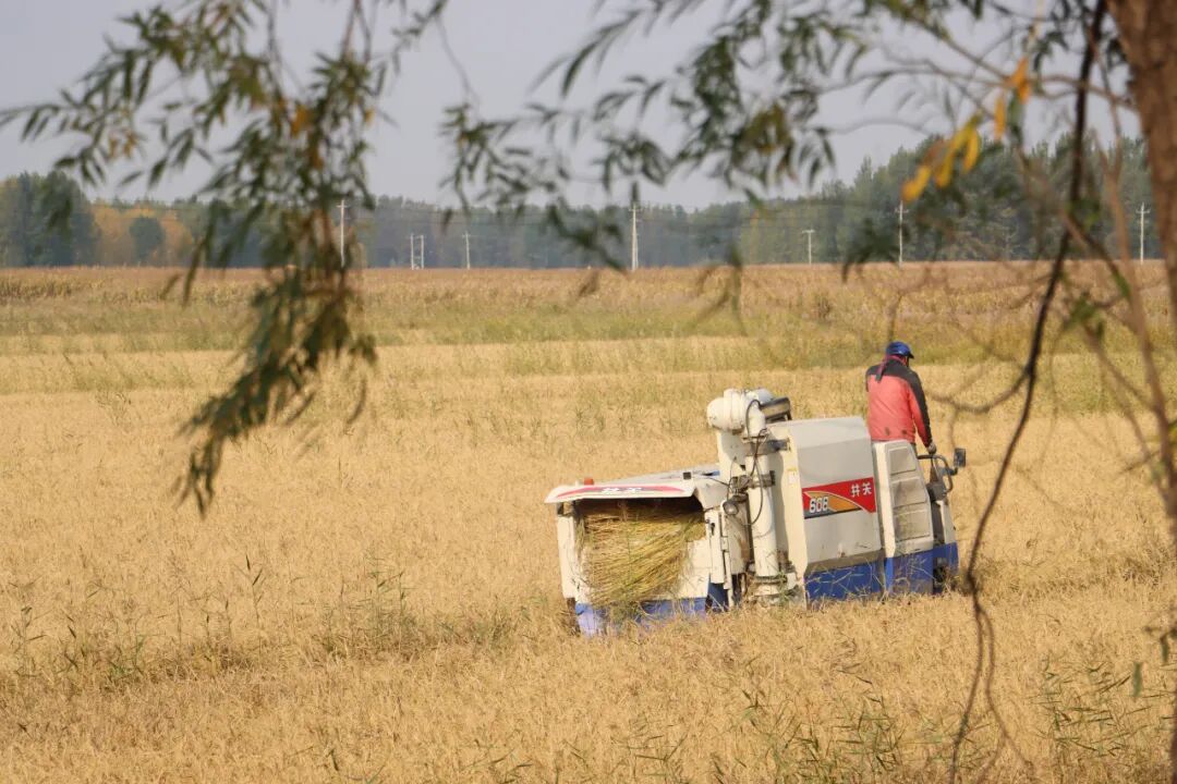 金秋时节,稻谷进入成熟收获期,八仙筒镇1.6万亩水稻迎来了大丰收。金黄色的稻谷波浪起伏,宛如一片金色的海洋,走进乌兰章古村、伊和塔拉村的水稻种植地块,随着一排排稻穗被整齐地卷入机器,快速完成切割、脱粒、分离等一连串工序,一粒粒稻粒被收入“囊”中,繁忙的收割景象构成了一幅绚丽的现代农耕丰收图景。
