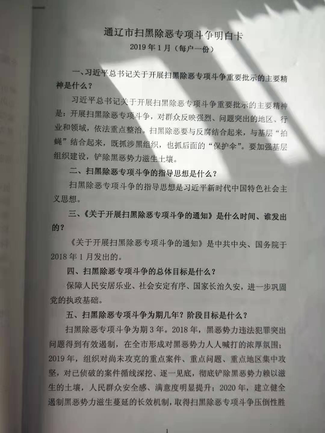 包村干部和两委成员入户发放、讲解扫黑除恶专项斗争明白卡