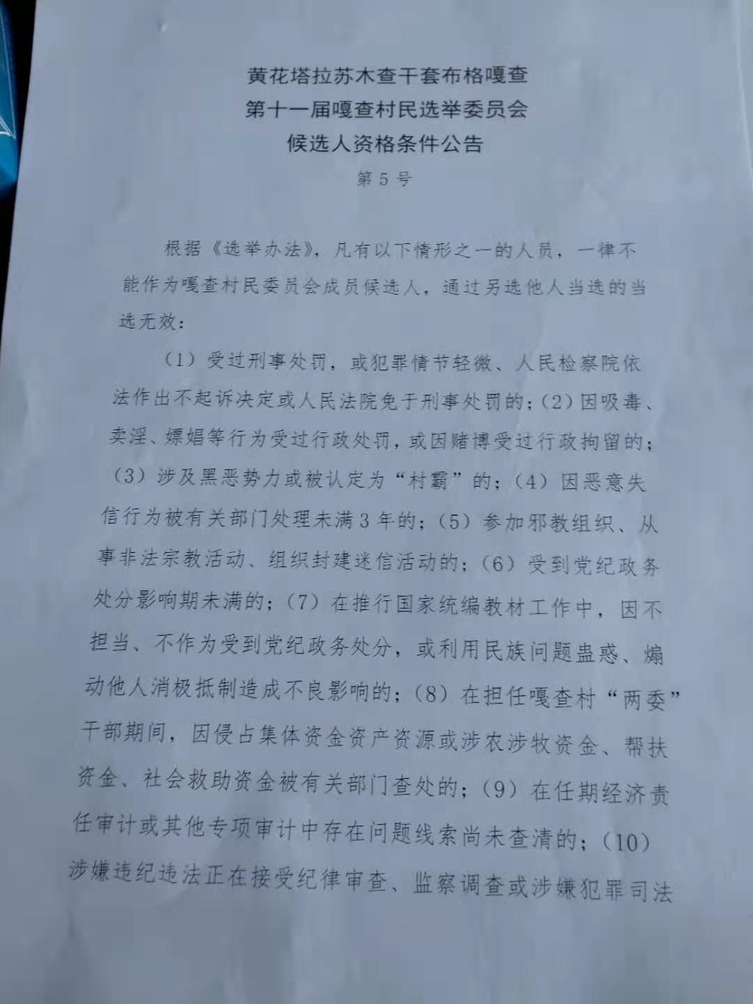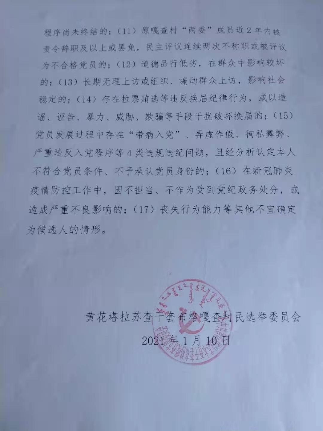 黄花塔拉苏木查干套布格嘎查第十一届嘎查村民选举委员会候选人资格条件公告 第5号